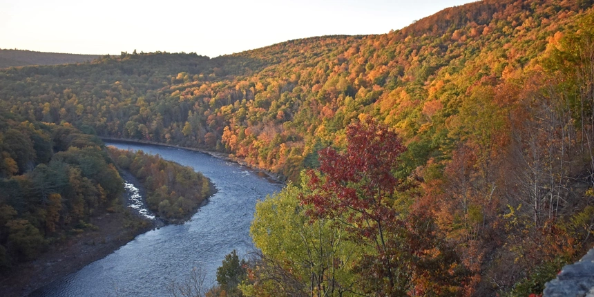 Just a short drive from our Barryville campground, Hawk's Nest offers one of the most scenic drives in New York. The winding road, perched high above the Delaware River, provides breathtaking views of the Catskills, especially as the leaves change. It's a must-visit spot for any fall foliage enthusiast.